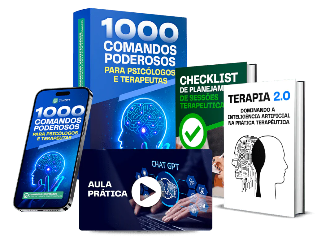 Você terá acesso a mais de 1000 Comandos do ChatGPT para Psicólogos e Terapeutas (tudo em pdf) para poder auxiliar em terapias e tratamentos relacionados a saúde mental e emocional.